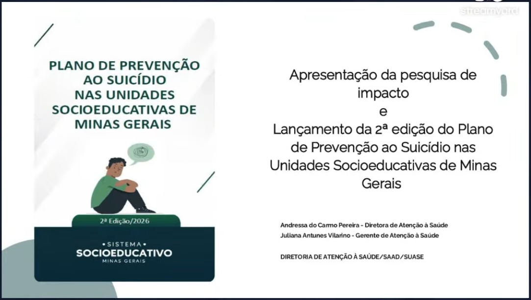 A Subsecretaria de Atendimento Socioeducativo (Suase) promoveu, nessa segunda-feira (13), o Webinário de lançamento e apresentação da 2ª edição do Plano de Prevenção ao Suicídio para as unidades socioeducativas de Minas Gerais.